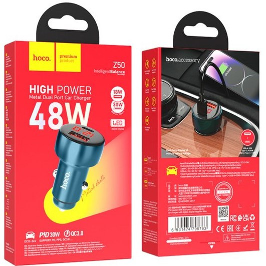 شارژر فندکی 48 وات هوکو مدل Z50 PD30W+QC3.0